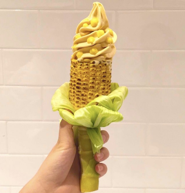 DOMINIQUE ANSEL BAKERYはバニラアイスとチョコレートクランチをマシュマロで包み、スモークした木の枝に刺し て焼き上げたキャンプを連想させるスイーツ「フローズン スモア」、アメリカのおやつの定番クッキーと ミルクからインスピレーションを受けて誕生した「クッキーショット」などを開発してきた。この夏にお届けする新作ソフトクリームは、夏本番のこれからの季節には欠かせない“焼きとうもろこし”と 日本人のソウルフードとも言える“おにぎり”をモチーフにしたもの。
