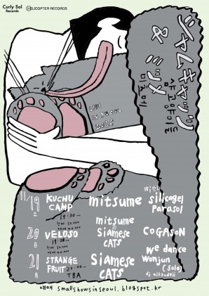 両者にとって初となる韓国公演を開催することが発表された。Curly Sol RecordsとHelicopter Recordsという韓国の人気インディーレーベルが主催し、各公演、韓国のバンドをゲストに迎える。ミツメとシャムキャッツがどちらも出演する11月20日の公演には、今年3月に来日公演を行い、ミツメやシャムキャッツ菅原のソロバンドとも共演したコガソンも出演する。