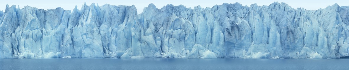 一般的には未開の地といえるアラスカの北極圏や、海に浮かぶ氷河の巨大な壁を、現在の細密なデジタル画像による「架空」のパノラマ写真に展開してみる。
