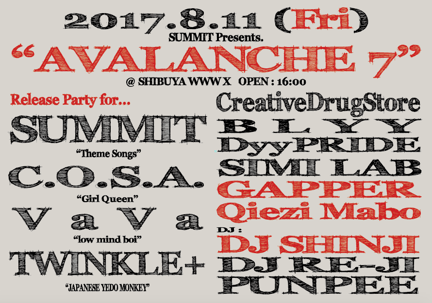 SUMMIT Presents. "AVALANCHE 7" @渋谷 WWW X