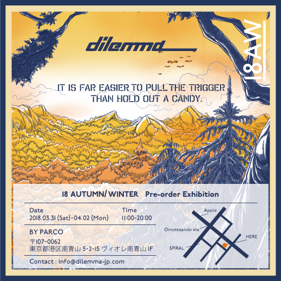 2017年に創立、狭間にある美がコンセプトのブランドdilemmaが、2018-19AW COLLECTIONの展示会兼受注会を開催する。