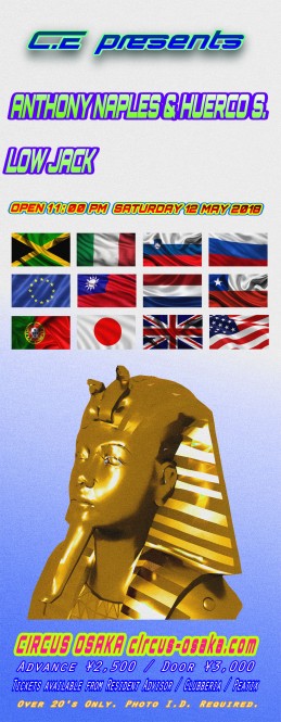 翌日には大阪CIRCUSでもパーティーを開催、Anthony NaplesにHuerco S.、そしてLow Jackが出演する。