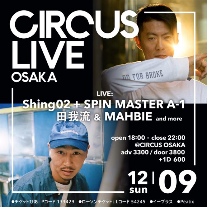 Shing02と田我流という日本のラップシーンでも、ワンアンドオンリーの存在感を放っている2人のラッパーによるツーマン公演が、12/9(日)にCIRCUS OSAKAで開催となる。