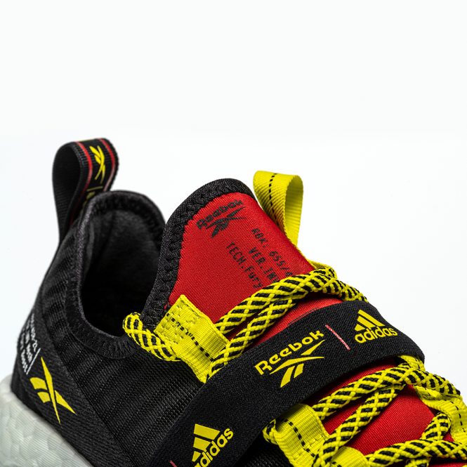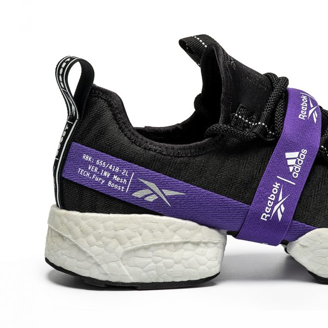 ベースとなるSOLE FURYは、Reebokが誇る3 つの代表的なテクノロジーを融合したモデルとして開発された、軽量性と柔軟性に加え、通気性にも優れたシューズとなっており、分離したソール構造「スプリット クッショニング システム」と、アシンメトリーなアッパーデザインによって、リーボックならではの斬新なフォルムを生み出した。今回の『SOLE FURY BOOST』は、adidasの革新的なクッショニングテクノロジーBOOSTを取り入れることで、クッション性と耐久性が高まり、両ブランドが誇るテクノロジーが見事に融合された、アップデートモデルとなっている。カラーリングには、グレーxエメラルドグリーンに加えて、『INSTAPUMP FURY』の初期モデル、通称「シトロン」カラーをモチーフとしたブラックxレッドxイエロー、adidasによる『Ultraboost』初期モデルからインスパイアされたブラックxパープルの3種類が採用されている。