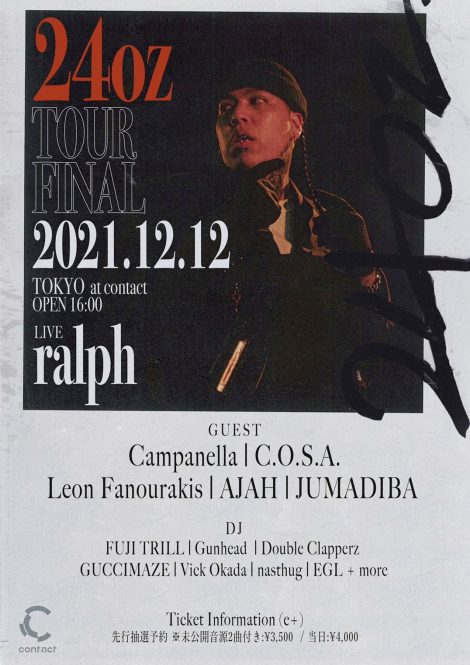 ralphが6月にリリースしたミックステープ『24oz』のツアーファイナルを12/12(日)に渋谷 Contactで開催する。