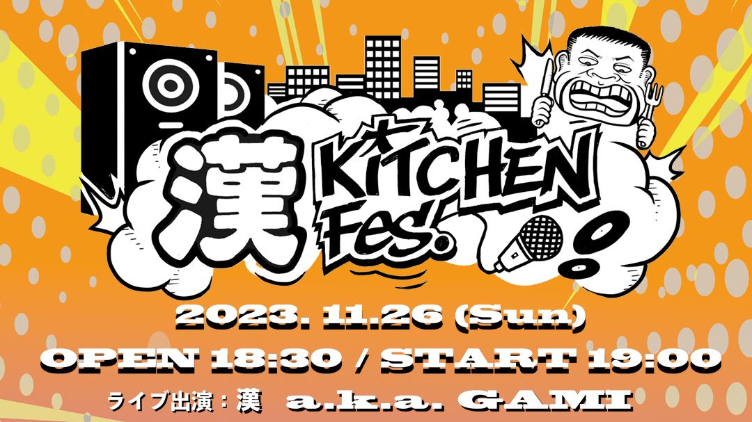漢 a.k.a. GAMIがMVを務める人気料理番組『漢 Kitchen』が初のライブイベント『漢 Kitchen Fes.』を、11/26(日)に六本木のショーパブ・タントラ東京で開催する。