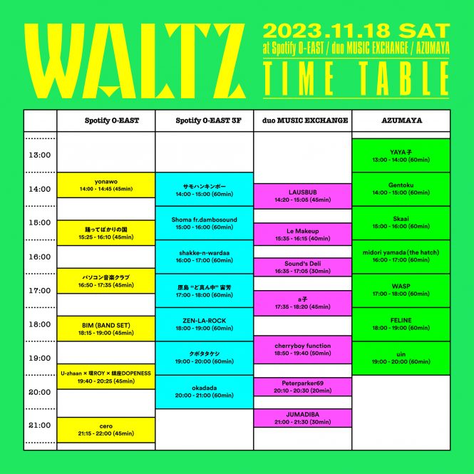 okadada - ハハハ、むずかしいお題やなぁ。でも、自分はさっきから“場所”って言ってるけど、『WALTZ』みたいなイベントって、それこそceroみたいなバンドやヒップホップのメンツ、DJとかいろんな音楽やってるひとが出るわけで、純然たるライブハウスやクラブのイベントとはまた違うじゃないですか。普段行かない場所に行くってだけでも、いろんなきっかけの端緒を掴めると思うんですよね。ただ観たいアーティストがいっぱい出るってだけのイベントじゃないほうが、そういう可能性っていうのは増えるので、その意味では広く来てほしいよなと思います。