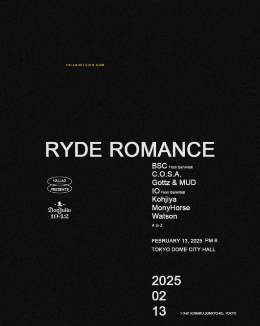 不定期なリリースながら即完売が続くブランドVALLADによる初の主催ライブイベント『RYDE ROMANCE』が、来年2/13(木)にTOKYO DOME CITY HALLで開催される。