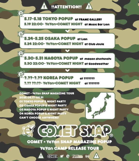 またYAMEPI©によるクルーCOMETによる雑誌COMET MAGAZINEとコラボしたPOP UPとツアーも開催。東京、大阪、名古屋で開催される。
