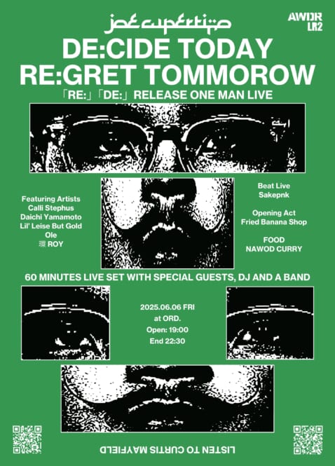 Joe Cupertinoのバンドセットを含むロング・ライブセットには作品への客演アーティストであるCalli Stephus、Daichi Yamamoto、Lil' Leise But Gold、Ole、環ROYの参加が決定。