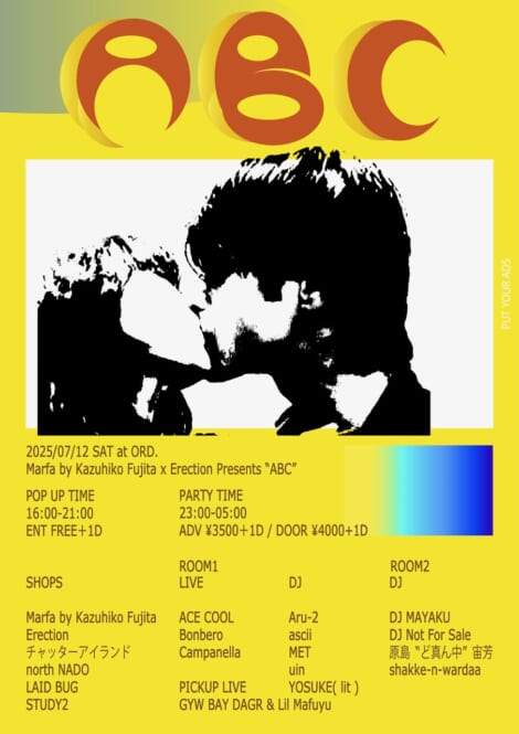 シルクスクリーンでの一点一点手刷りプリントによるプライヴェートアパレルブランドMarfa by Kazuhiko Fujitaと不定期ながらも数々のパーティをメイクし続けている 『Erection』がタッグを組んだPOP UPとパーティーが代官山のミュージックベニュー ORD. DAIKANYAMAで7/12(土)に開催される。