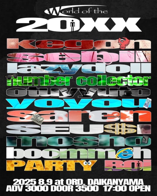 kegønが先導するプロジェクト「20XX」が代官山ORD.にてイベント『World of the 20XX』を8/9(土)に開催する。
