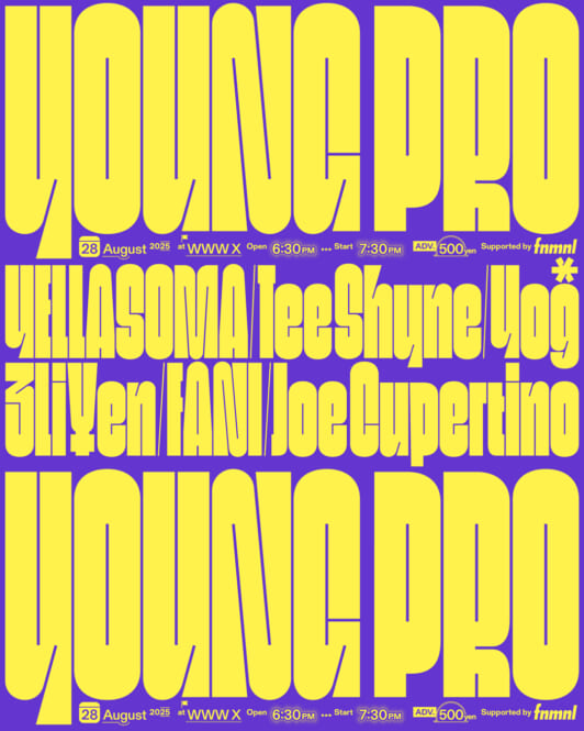 これまでに LEX、LANA、ralph、Watson、Bonberoなどが出演してきた『YOUNG PRO』。第9回となる今回は、日本とナイジェリアのヘリテージを持つ3Li¥enは、ハイパーポップやオルタナティブを横断する鋭く未来的な感性を武器に、東京の「Baddest」として存在感を放つ新星。京都を拠点に活動するFANIは、貧困や家庭環境といったリアルな背景を独自のポジティブなラップで昇華し、話題作『Out the 貧乏』で注目を集める気鋭。