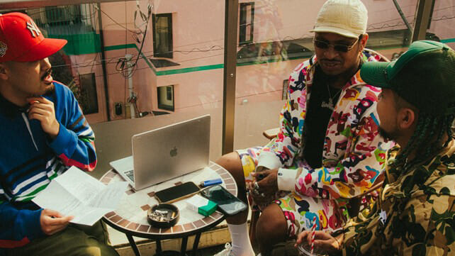 Leon Fanourakis - そうですね。Jinmenusagiさんも前AKと曲を作ってて、もちろんMIYACHIもAKと同じニューヨーク出身じゃないですか?だから、「(みんながそれぞれの間で)何か作りたいな」っていう話をずっとしてたんですけど、確か時間がそんなになくて、スタジオのスケジュールとかが合わなかったんですよ。それで、自然と「みんなまとまって制作しちゃおうか」っていう風になったんですよね。