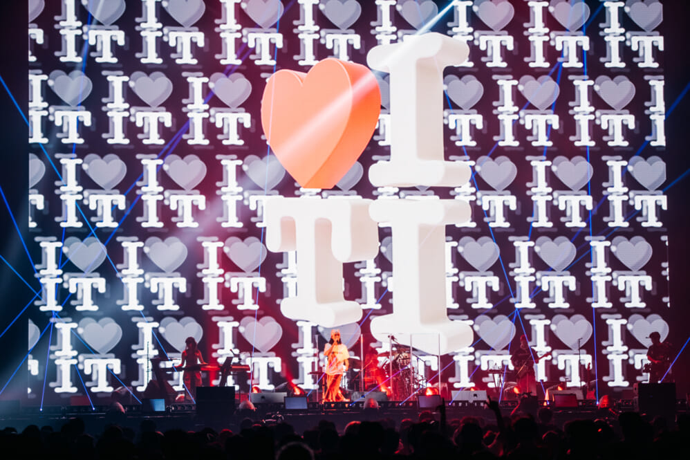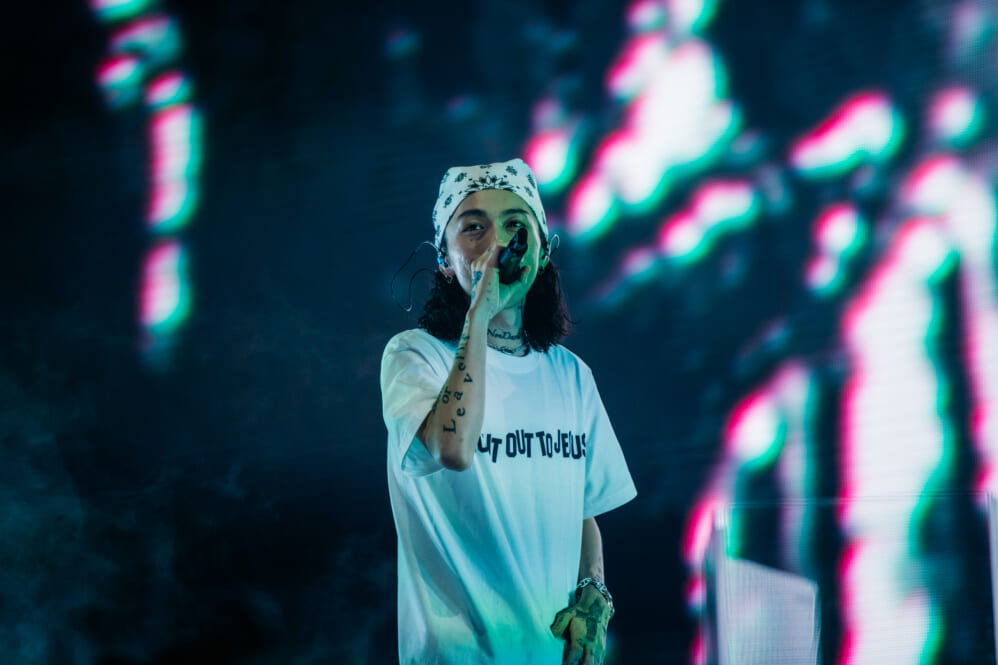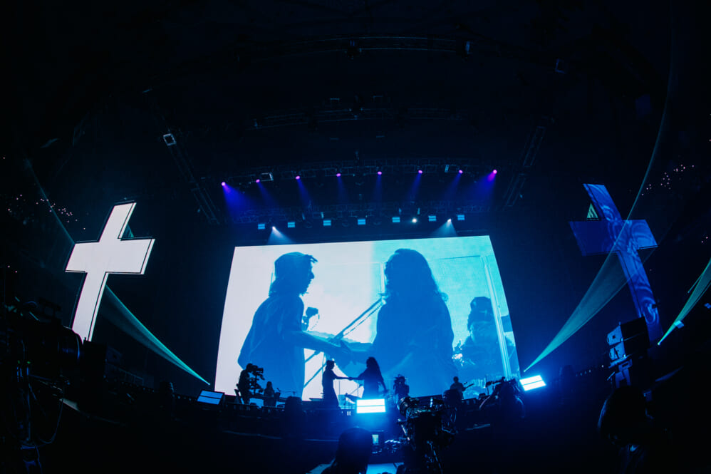 ステージ両サイドに鎮座した十字架型の巨大LED。そのLEDが発光し、スクリーンにはKvi Babaのバストアップ映像が映し出され、重なるように「Shout Out To Jesus」の文字が浮かぶ。彼らしいモチーフと共に公演はスタートした。そして興奮冷めやらぬままに、最新アルバムのリード曲"I Like It"で一気にグルーヴを掴む。「Tired But Fine」の前には、彼は観客にこう語りかけた。「来れない人のことも想うよ」と、会場にいない人までも包み込むような言葉を投げかけた。その包摂的な姿勢はKvi Babaの世界観その者だった。