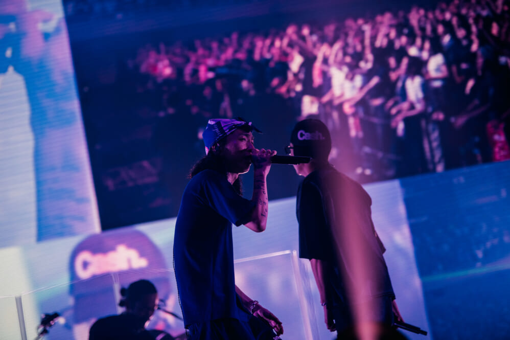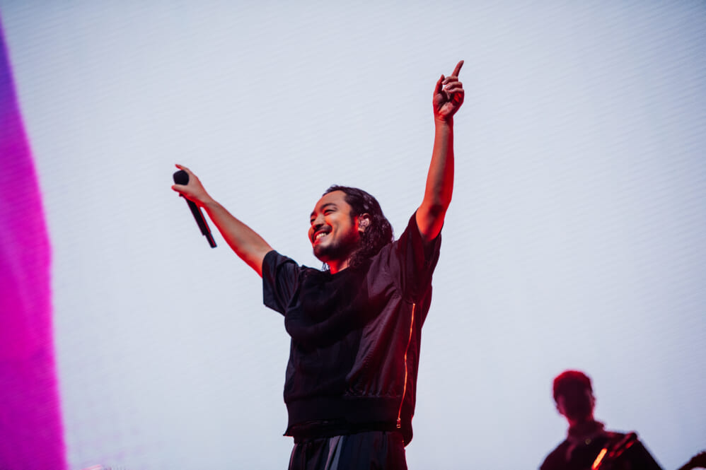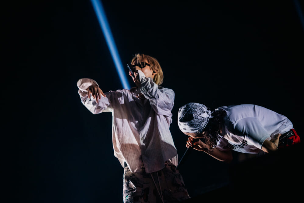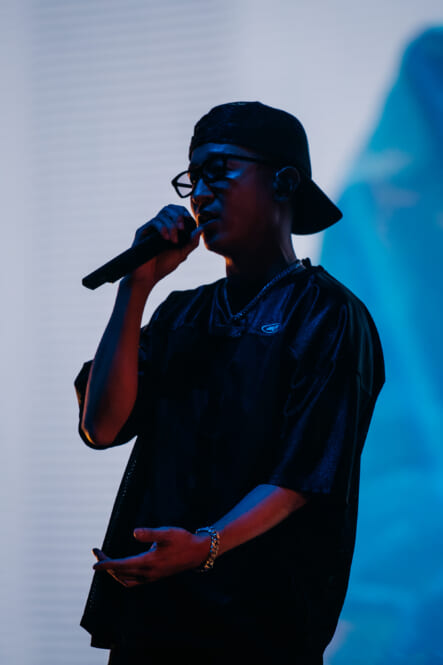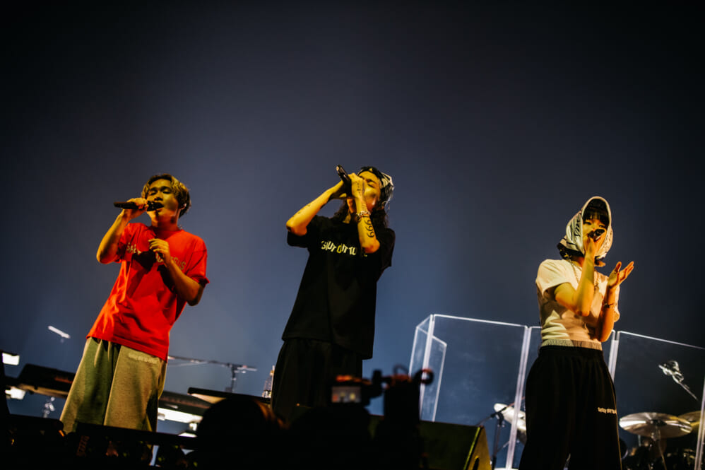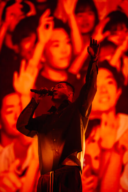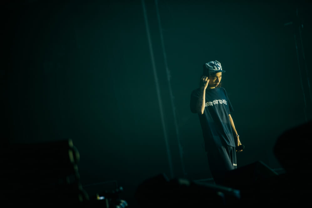 というラインのとおり、困難をも自分の力で肯定していく意思。それは「今の自分だからこそ昔の自分も愛せる」という先ほどのMCと呼応していた。続く"Too Bad Day But・・・"、"Backseat"では、仲間と彼の現在地が力強く刻まれていく。