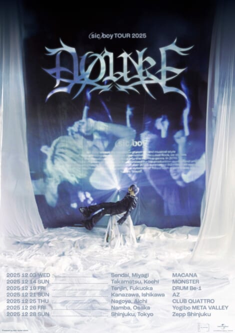 さらに、12月には全国7箇所を回るワンマンツアーの開催が決定。sic)boyの集大成を物語るようなツアーを予定しており、公演の詳細やチケットについては今後HPやSNSにて発表予定とのことだ。