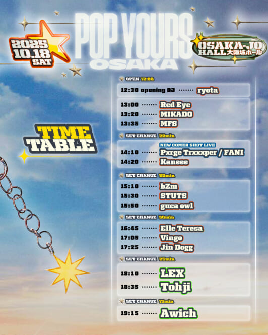 『POP YOURS OSAKA』のタイムテーブルが公開| オープニングDJでryota、MCでMARZYもアナウンス