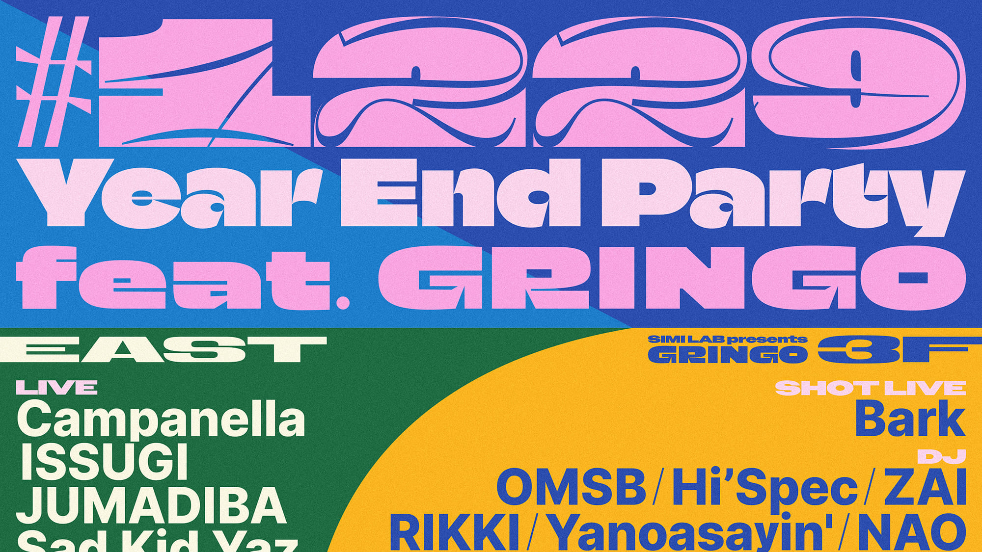 O-EASTの年末恒例のパーティーにCampanella、ISSUGI、JUMADIBA、Sad Kid Yaz、SPARTA、STUTSなどが出演