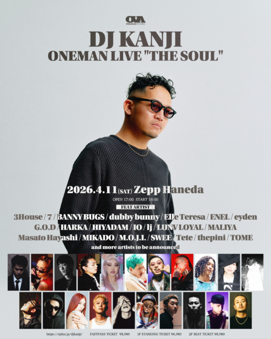 さらに、4/11(土)にZepp Hanedaで開催されるワンマンライブを控えるDJ KANJIの第二弾客演アーティストが解禁された。7、MIKADO、Tete、Masato Hayashi など、豪華アーティストの出演が決定した。